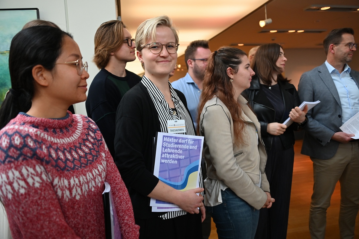 Höxter/Düsseldorf (red). Eine Delegation aus 35 Personen reiste am 29.10. in den Düsseldorfer Landtag. Studierende, Lokalpolitiker, Unterstützer und Mitglieder des „Aktionskreises Lehre am Hochschulstandort Höxter“ übergaben 6.099 Unterschriften des Bürgervotums am Rande einer Sitzung des Wissenschaftsausschusses. Mit dabei waren die Kreisdirektorin Manuela Kupsch und Bürgermeister Daniel Hartmann. Die Unterschriften wurden von der NRW-Wissenschaftsministerin Ina Brandes sowie Mitgliedern des Ausschusses entgegengenommen.