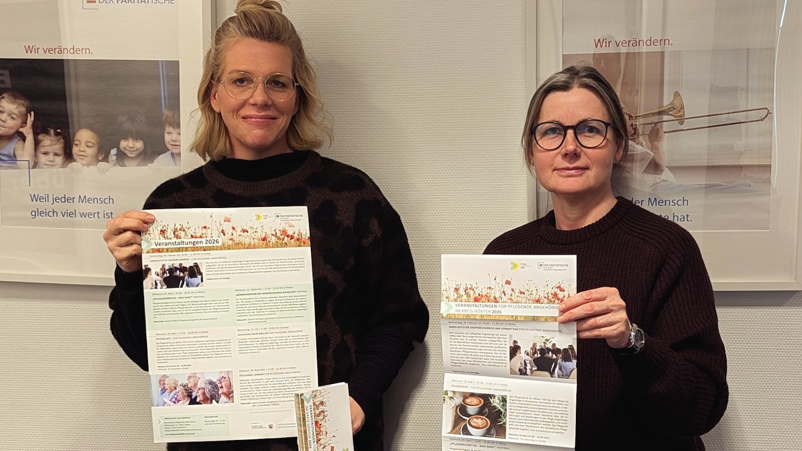 Kathrin Groppe und Conni Pätzold vom Kontaktbüro Pflegeselbsthilfe mit dem Programm für pflegende Angehörige