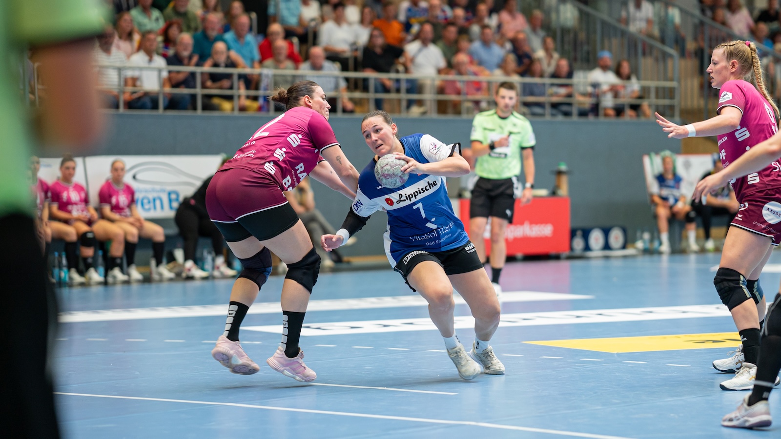 Lepschi eröffnete die Partie des 13. Spieltags direkt mit einer Parade gegen Gabriela Bitolo. Im ersten Angriff folgte jedoch ein technischer Fehler von Elín Magnúsdóttir, sodass der Ballbesitz erneut wechselte. Auch nach drei Minuten blieb die Begegnung torlos, da Lepschi doppelt nachlegte: Zunächst parierte sie den Siebenmeter von Lindemann, anschließend den Gegenstoß von Bitolo. Doch auch die Gäste blieben zunächst ohne Treffer.