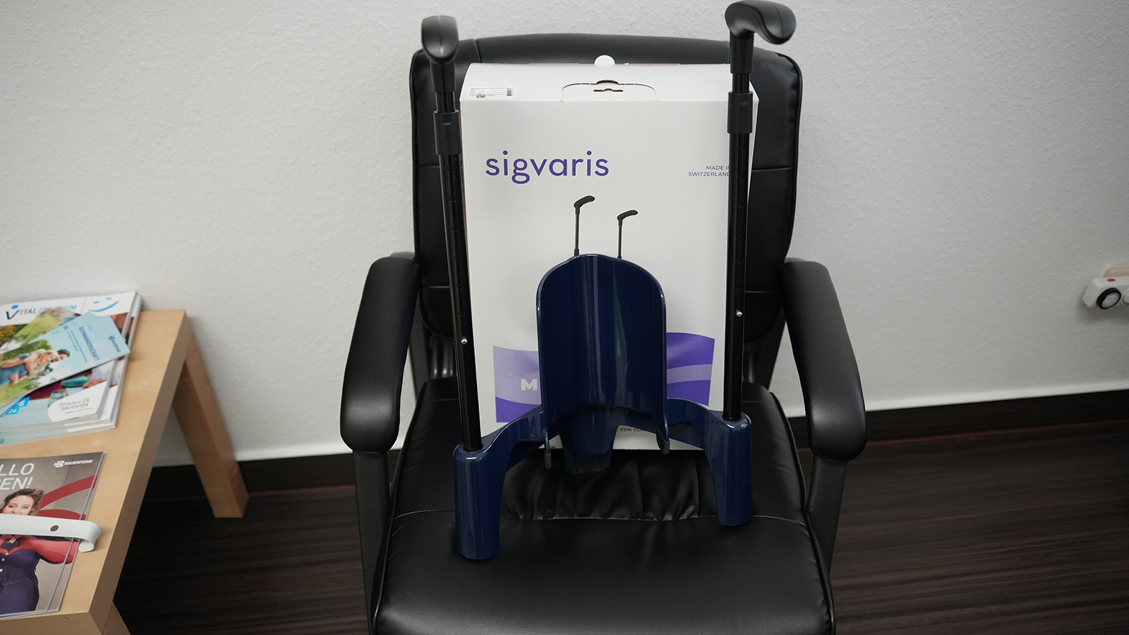Eine weitere Möglichkeit bieten Gestelle. Hier wird der Strumpf über einen Rahmen gespannt, in den anschließend hineingestiegen wird. „Mit den Griffen kann der Strumpf dann am Bein nach oben gezogen werden“, so Parschau. Unterschiedliche Ausführungen – etwa mit verstellbaren oder ausziehbaren Griffen – ermöglichen eine Anpassung an individuelle Bedürfnisse.