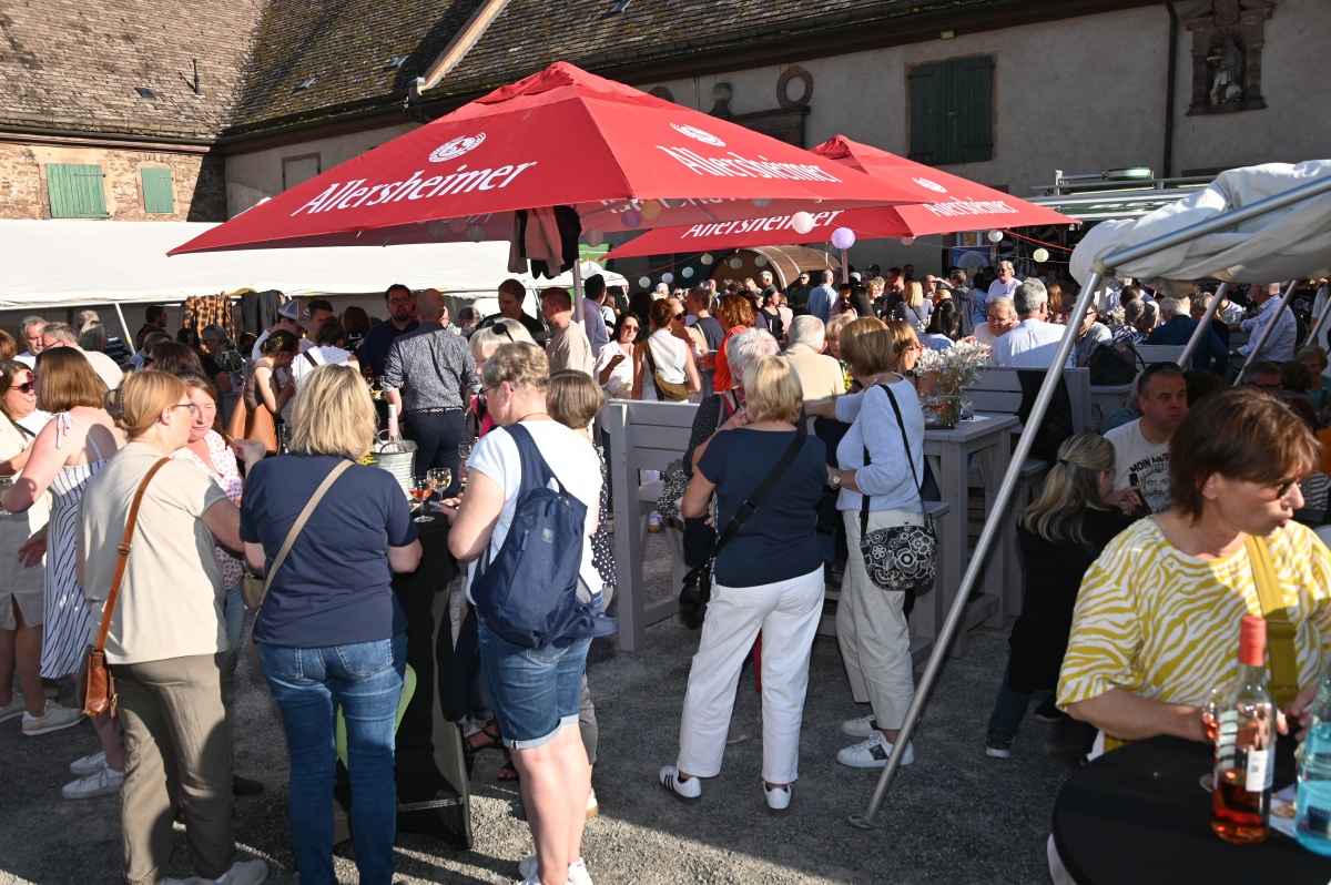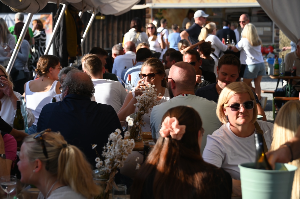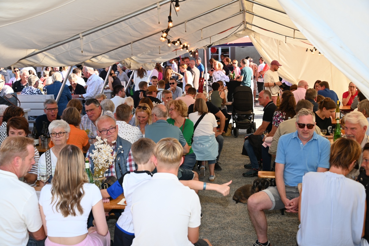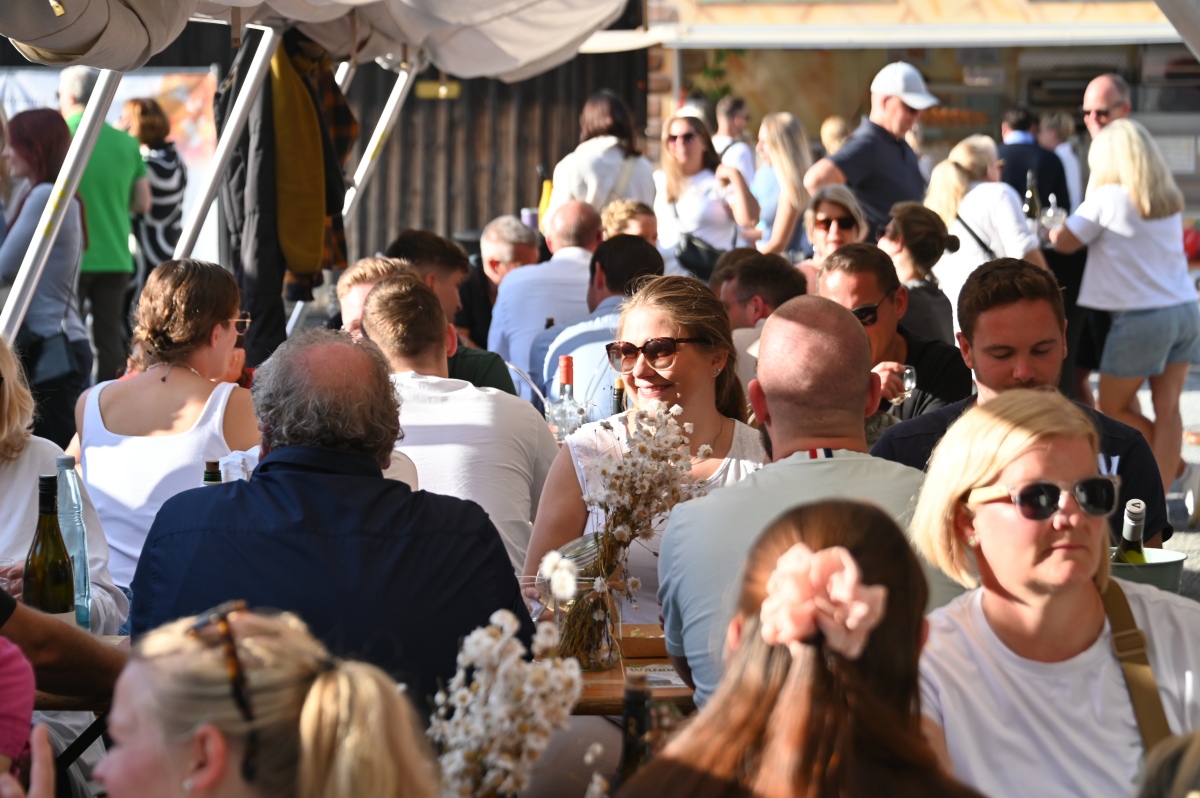 Höxter (TKu). So viele Gäste wie noch nie zog das Benefiz-Weinfest am vergangenen Samstag in den Corveyer Domänenhof: Geschätzt mehr als 1000 Besucherinnen und Besucher genossen bei erneut strahlendem Sonnenschein, gutem Wein, kulinarischen Spezialitäten und stimmungsvoller Musik das Weinfest. 1.003 Weinflaschen gingen über die Theke – im Vorjahr waren es 630. Bereits vor 16 Uhr strömten die ersten Gäste auf das Gelände vor dem Corveyer Weinhaus. Zum siebten Mal luden die Serviceclubs Ladies’ Circle 64 Höxter-Holzminden und Round Table 150 Höxter-Holzminden zu dem Fest ein, das bereits zum vierten Mal in der historischen Kulisse des Domänenhofs stattfand. „Bei traumhaftem Wetter und in malerischer Umgebung mit Blick auf das imposante Westwerk von Corvey bot sich eine ideale Atmosphäre“, meinte eine Besucherin, die ergänzt: „Die Atmosphäre des Domänenhofs passt perfekt zum Weinfest.“