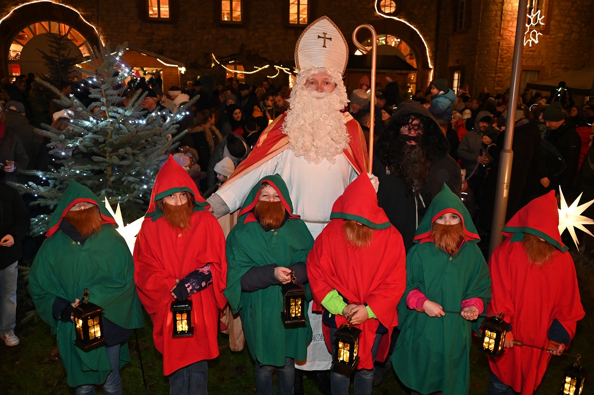 Ottbergen (TKu). Der wohl meistbesuchte Nikolaus- bzw. Weihnachtsmarkt im Kreis Höxter an diesem Wochenende: Der Ottberger Nikolausmarkt vom 5. bis 7. Dezember 2025 ist wieder sehr gut eingeschlagen und sorgte für echte vorweihnachtliche Stimmung bei den Menschen in Ottbergen im Wiemersmeyerschen Hof und im KuStall. Besonders der Nikolaustag am 6. Dezember wurde zu einem Höhepunkt des Wochenendes: Alleine mehr als 500 Menschen kamen zum Bahnhof, um den Nikolaus festlich in Empfang zu nehmen. Im Wiemers Meyerschen Hof trafen die Nikolauspilger nochmals auf mehr als 100 Menschen. Der Hof platzte in diesem Jahr rekordverdächtig aus „allen Näthen“!