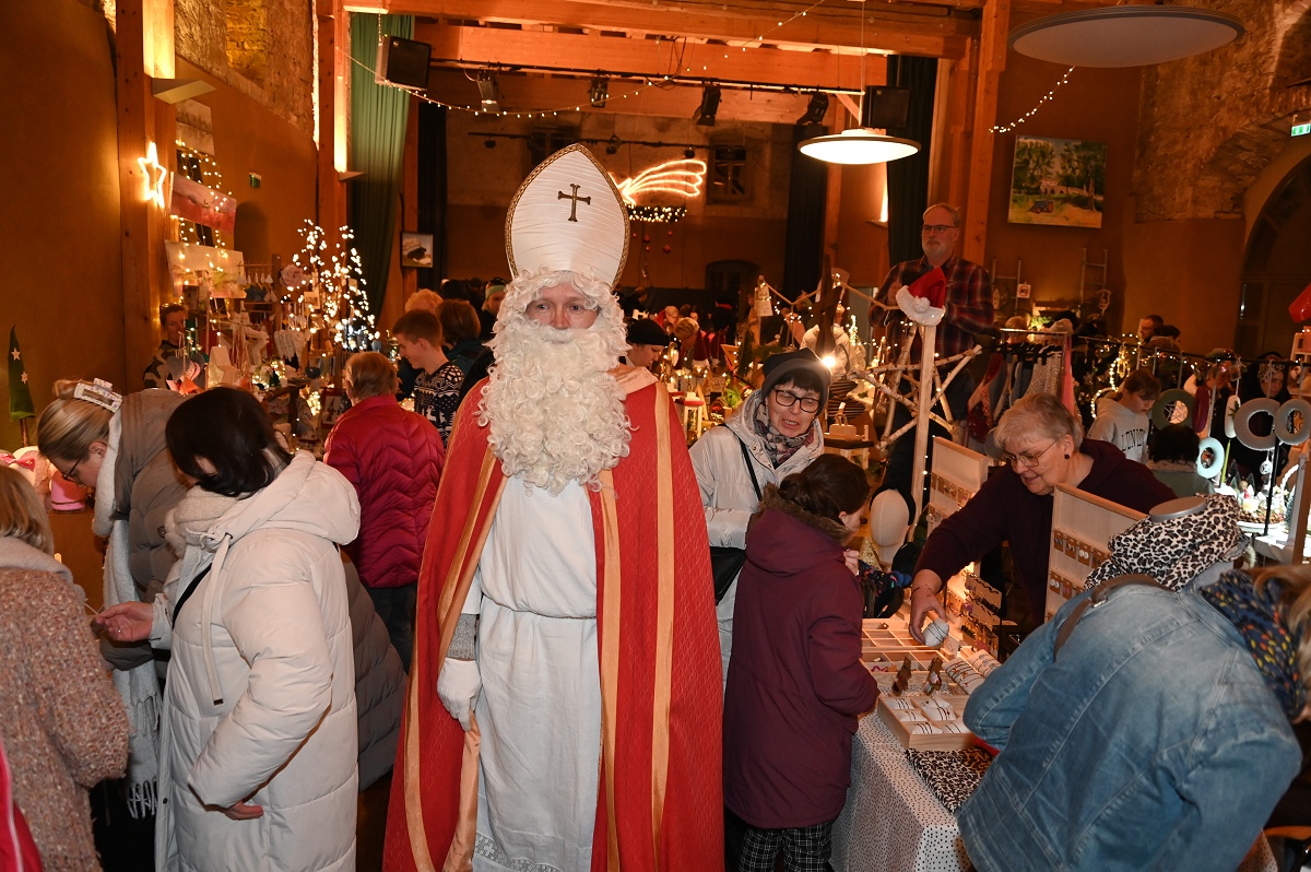 Bereits am Freitag startete der Markt mit einer gelungenen Premiere. Beim „Nikolaus-Vorglühen“ verwandelte sich der KuStall erstmals in ein Kino. Bei freiem Eintritt und hausgemachter Feuerzangenbowle genossen zahlreiche Gäste den Klassiker „Die Feuerzangenbowle“ und sorgten für einen gemütlichen Auftakt in das Adventswochenende. Der Samstag stand ganz im Zeichen des traditionellen Nikolausmarktes. Nach der offiziellen Eröffnung um 14 Uhr luden zahlreiche Stände auf dem Wiemers-Meyerschen Hof und im KuStall zum Bummeln, Schauen und Genießen ein. Handgefertigte Geschenkideen, weihnachtliche Dekorationen und ein vielfältiges kulinarisches Angebot fanden großen Anklang. Für die musikalische Einstimmung sorgten Magnus und Joss mit Weihnachtsliedern am Klavier.