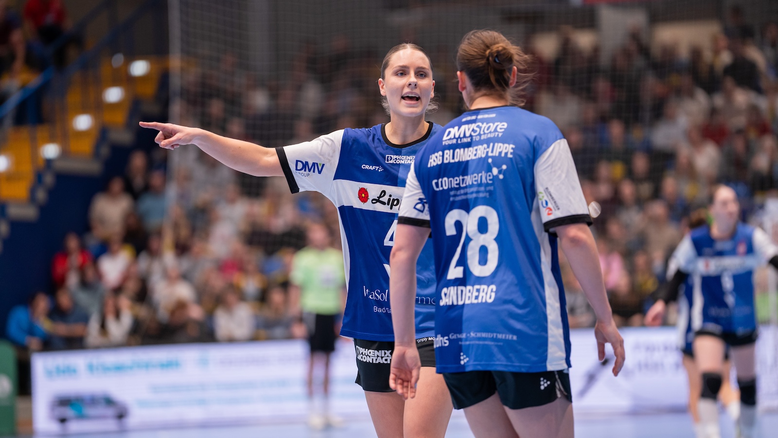 Obwohl die HSG zunächst schwer in den Angriff fand, erspielten sich Kühne und Co. nun bessere Lösungen. Nach einer weiteren Parade von Roth schaltete Vegué im Gegenstoß schnell und blieb diesmal vor Wachter eiskalt – die erneute Führung für die Blombergerinnen. Bei den Dortmunderinnen zeigte sich immer wieder Grijseels, doch die HSG ließ sich nicht stoppen: Vegué lief erneut den Gegenstoß, traf und sicherte kurz darauf wieder den Ball. Diesmal spielte Rüffieux auf Njinkeu, die den voll besetzten Gästeblock jubeln ließ.
